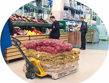 正是有了手動搬運車這種小型搬運車的使用,才解決了北國超市貨物搬運的難題。