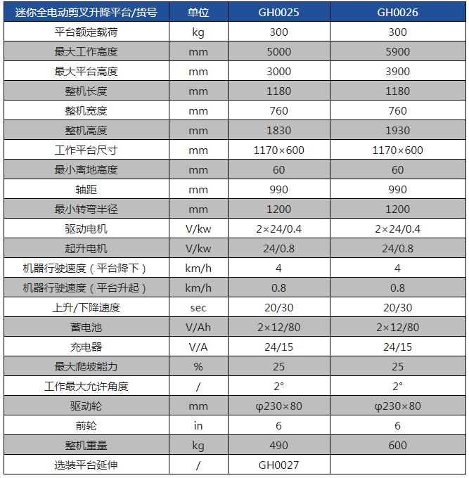 (2)操作平臺可選限高裝置,以保護人身安全。